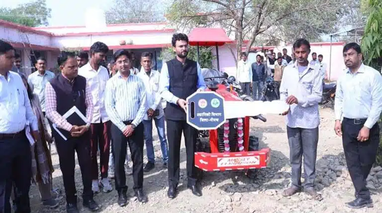किसान को यह ट्रैक्टर कलेक्टर के हाथों से दिया गया है। बता दे कि MP के किसान सोहन लाल जो कि नीमच जिले के जावद विकासखंड के ग्राम झांतला के रहने वाले है उन्हें शुक्रवार के दिन संकल्प से समाधान शिविर में कलेक्टर हिमांशु चंद्रा के द्वारा ट्रैक्टर की चाबी दी गई है। बता दे कि उद्यानिकी विभाग द्वारा राष्ट्रीय बागवानी यंत्रीकरण योजना के चलाई जा रही है।
